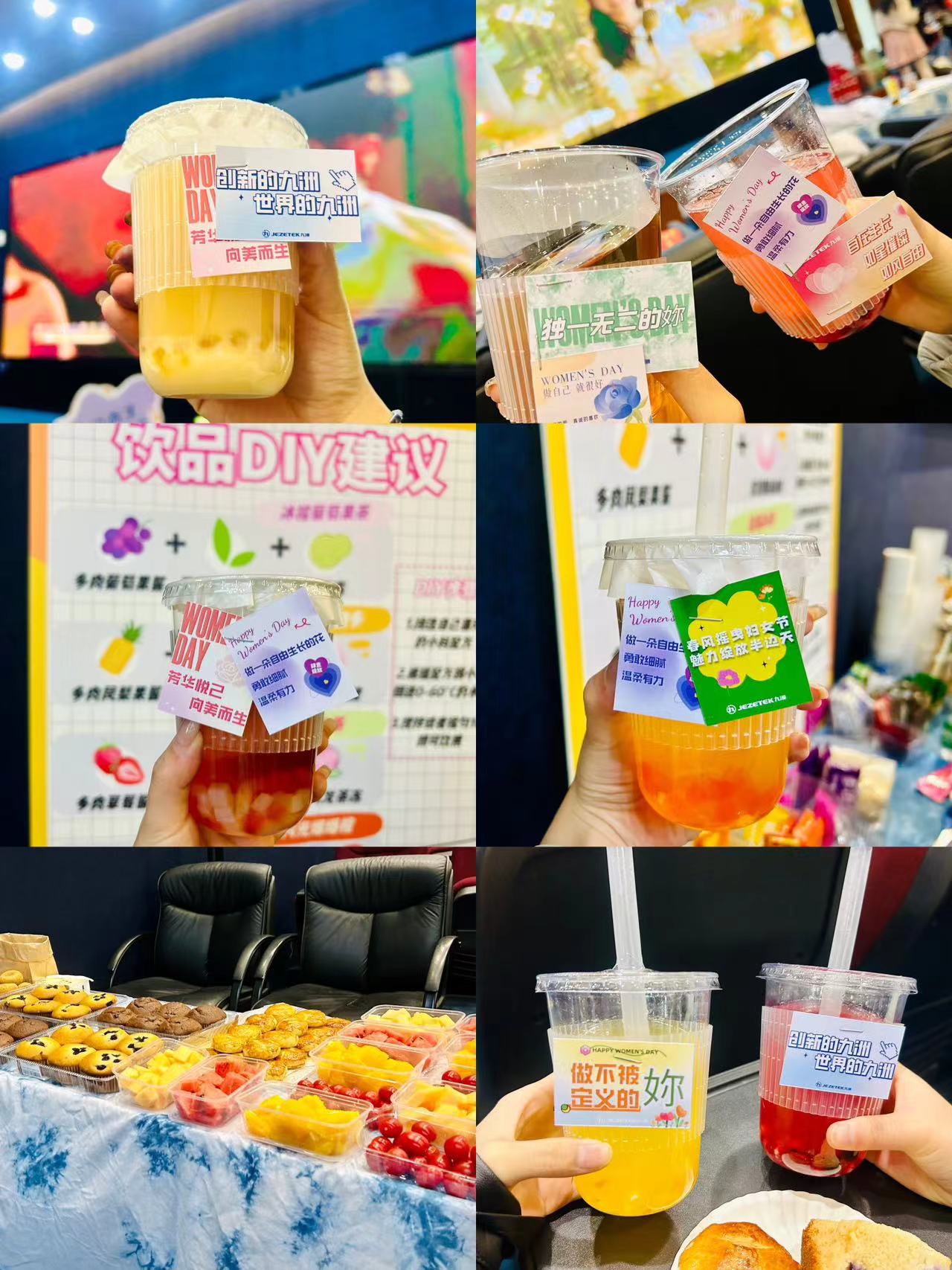 公司為大家準備了果醬、茶底、小料、水果等幾十種豐富的飲品制作材料,大家對配料比例、調味選擇、色彩搭配和外部包裝等方面進行創(chuàng)意設計來調制飲品。不一會兒一杯杯色彩繽紛、果香四溢、造型各式的專屬飲品制作完成,大家都沉浸在自己發(fā)揮想象、親自動手制作飲品的幸福感和滿足感中。