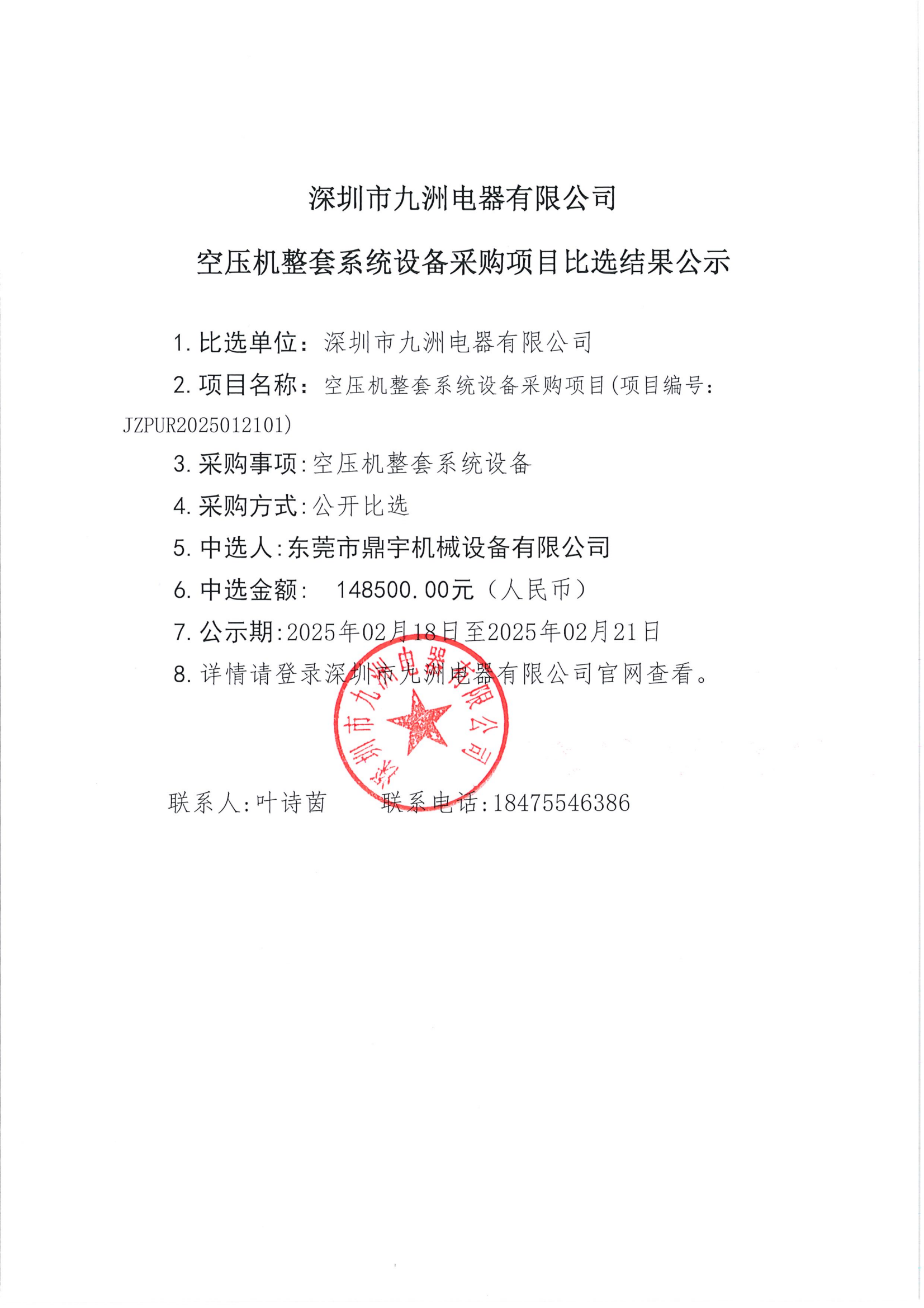 空壓機(jī)整套系統(tǒng)設(shè)備采購項(xiàng)目比選結(jié)果公示