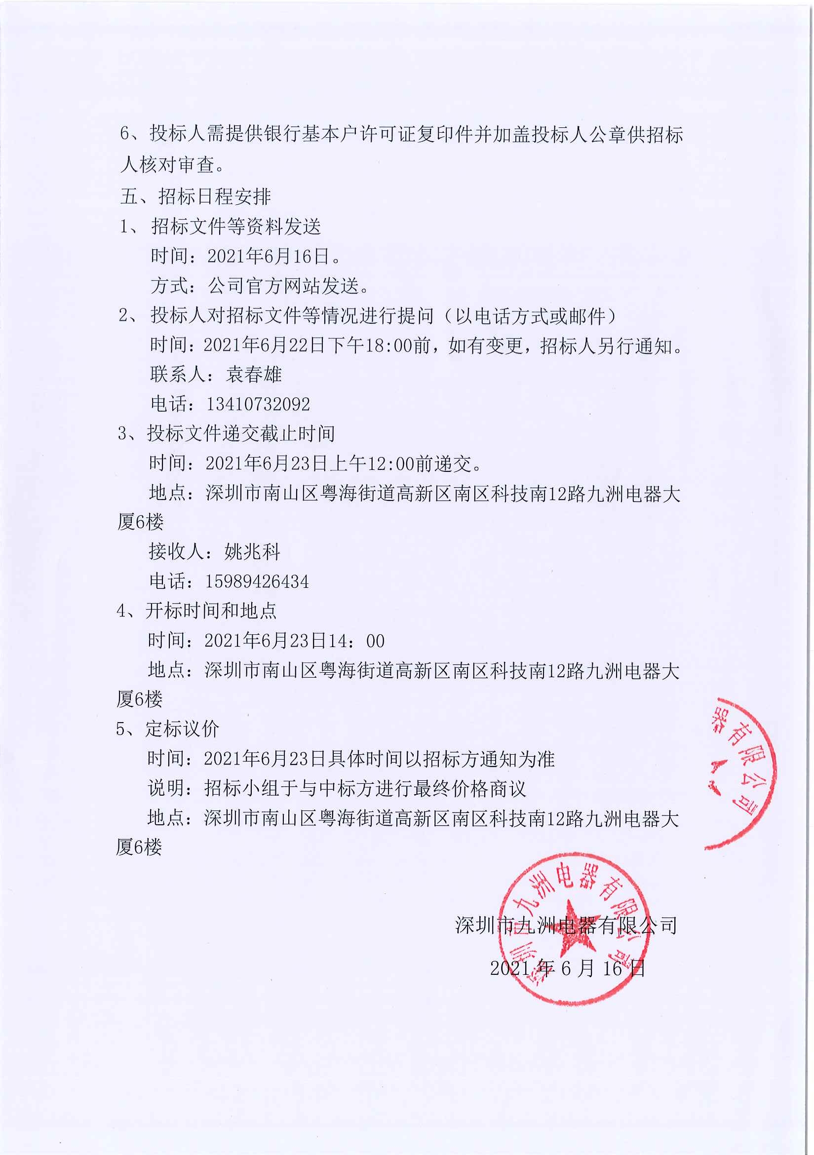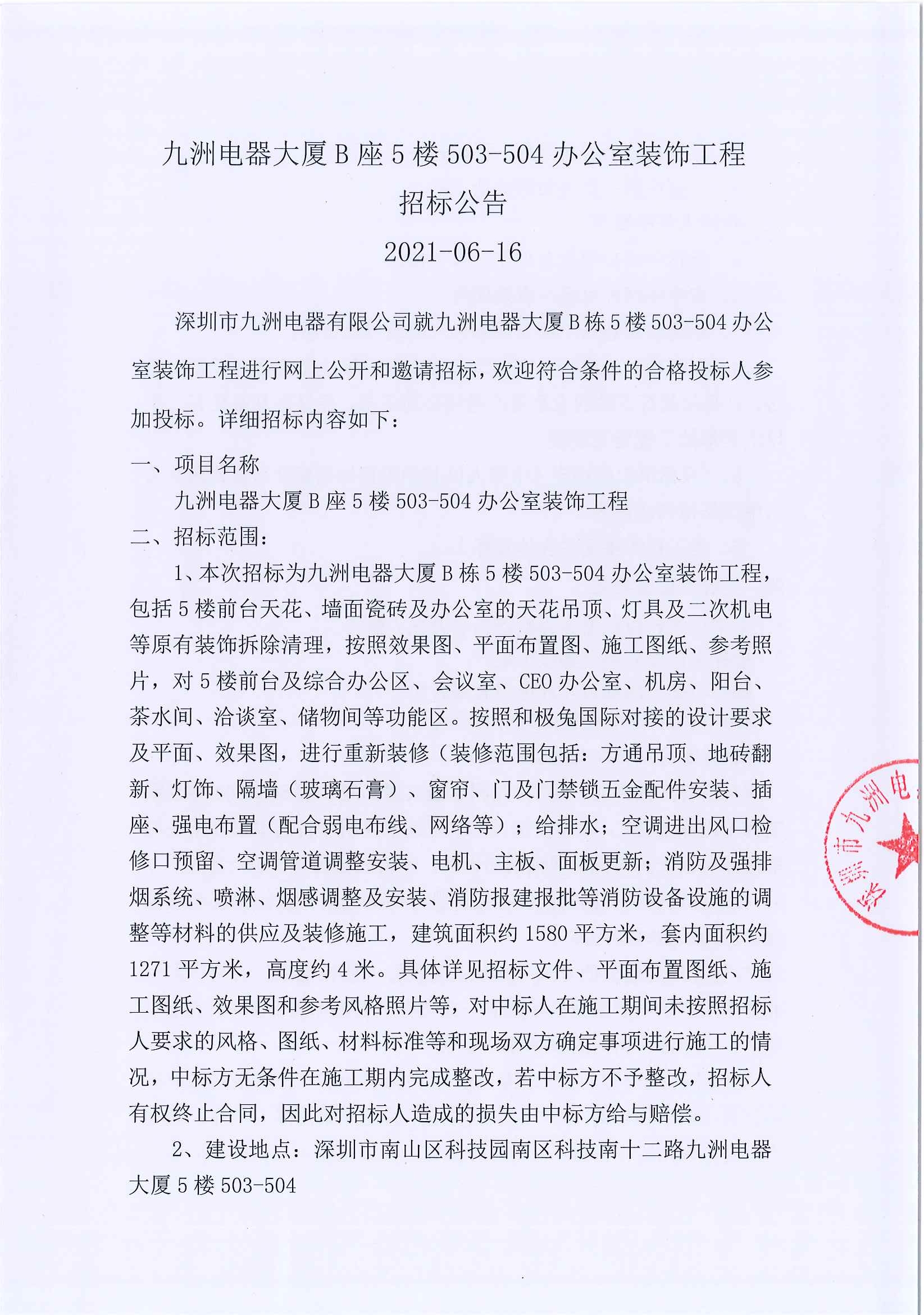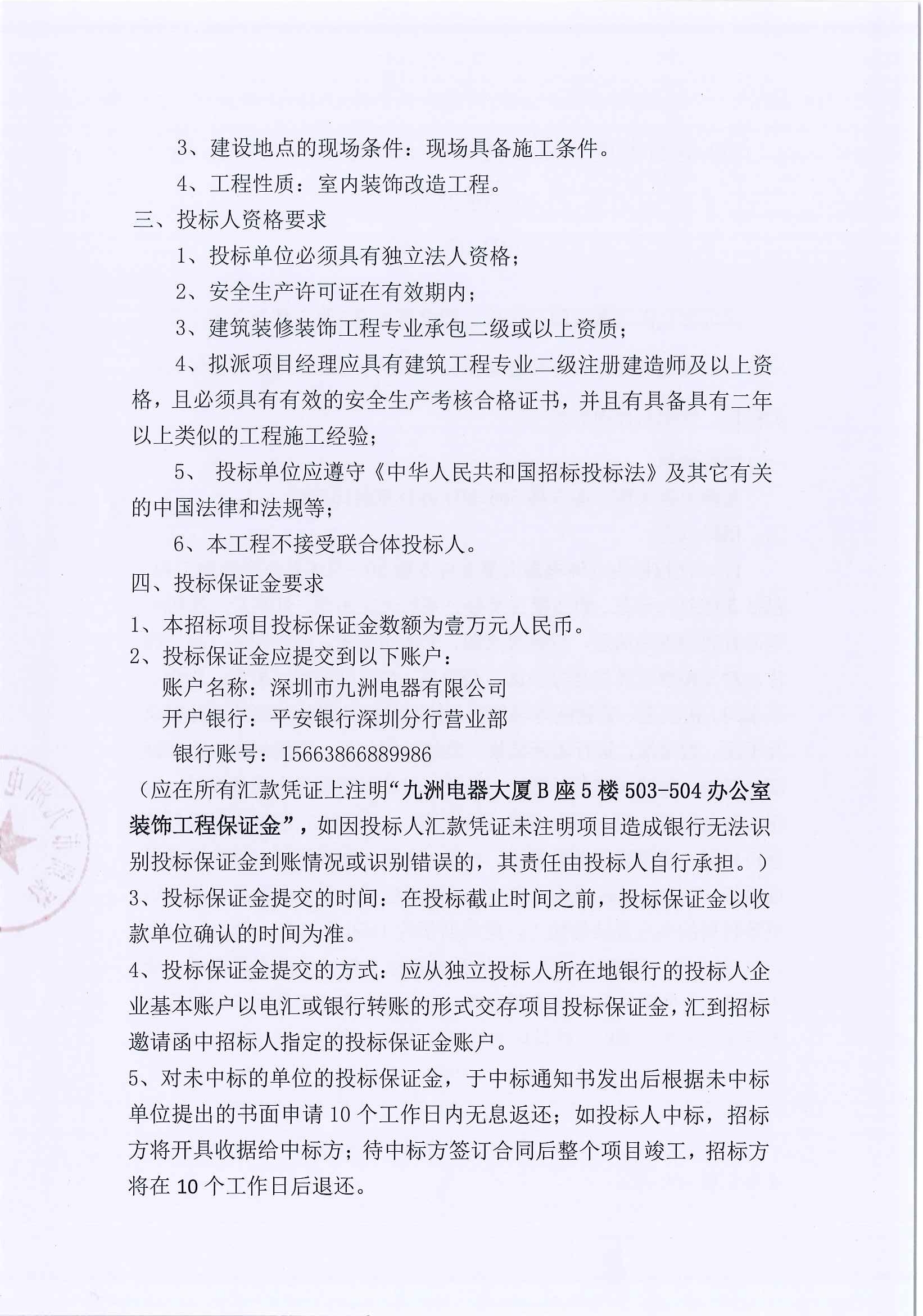 發(fā)布招標文件-九洲電器5樓辦公室招標文件