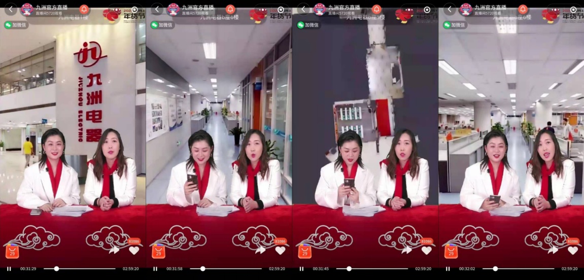 九洲線上年貨節(jié)以“科技創(chuàng)新、數(shù)字直播”為特色,“與時(shí)俱進(jìn),創(chuàng)新求勝”為目的,以“商品鉅惠大放送”為核心,以傳承中國優(yōu)秀文化傳統(tǒng)為內(nèi)涵。由九洲電器的老員工們溫情擔(dān)任“一線主播”,講述個(gè)人與九洲的相融共生的成長故事,在線上與九洲員工一一問候。助播選品組通過精選年貨,向線上的九洲家人推薦性價(jià)比極高的美味佳肴、服裝美容、電子通訊、清潔衛(wèi)生等與人們生活息息相關(guān)的各式各樣特價(jià)商品,營造了一種節(jié)日喜慶的親民購物氣氛。